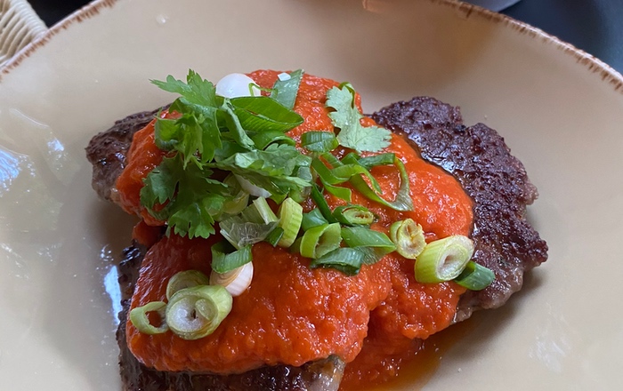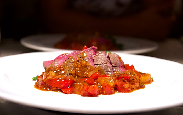 , Filet vom Galloway Rind mit Tomatensalsa und Bohnen